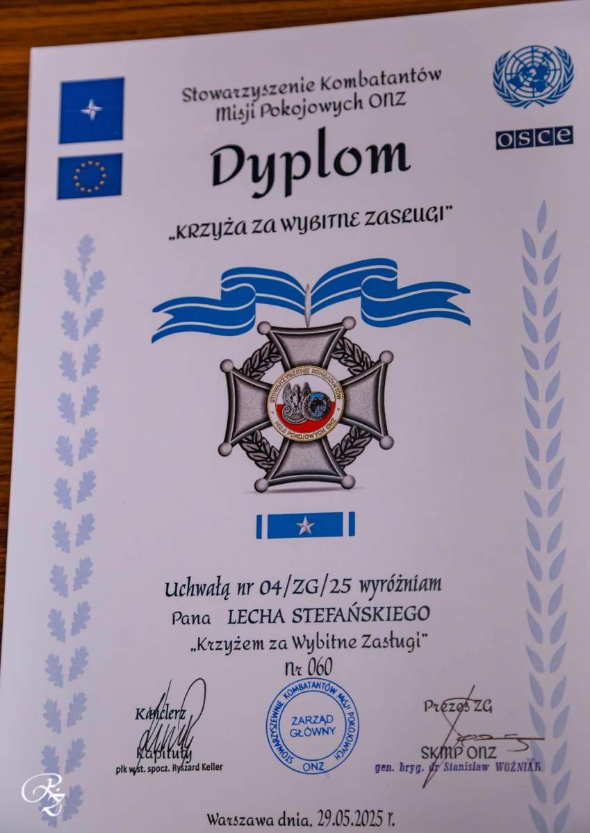 Na dwa dni przed 105 rocznicą Cudu Nad Wisłą, 13 sierpnia 2025r. w Gdyni na pokładzie Okrętu Muzeum ORP Błyskawica miała miejsce uroczystość odznaczenia „Krzyżem za Wybitne Zasługi”, Kolegi płk. w st. spocz. Lecha Stefańskiego z Kola nr 29 SKMP ONZ w Słupsku.