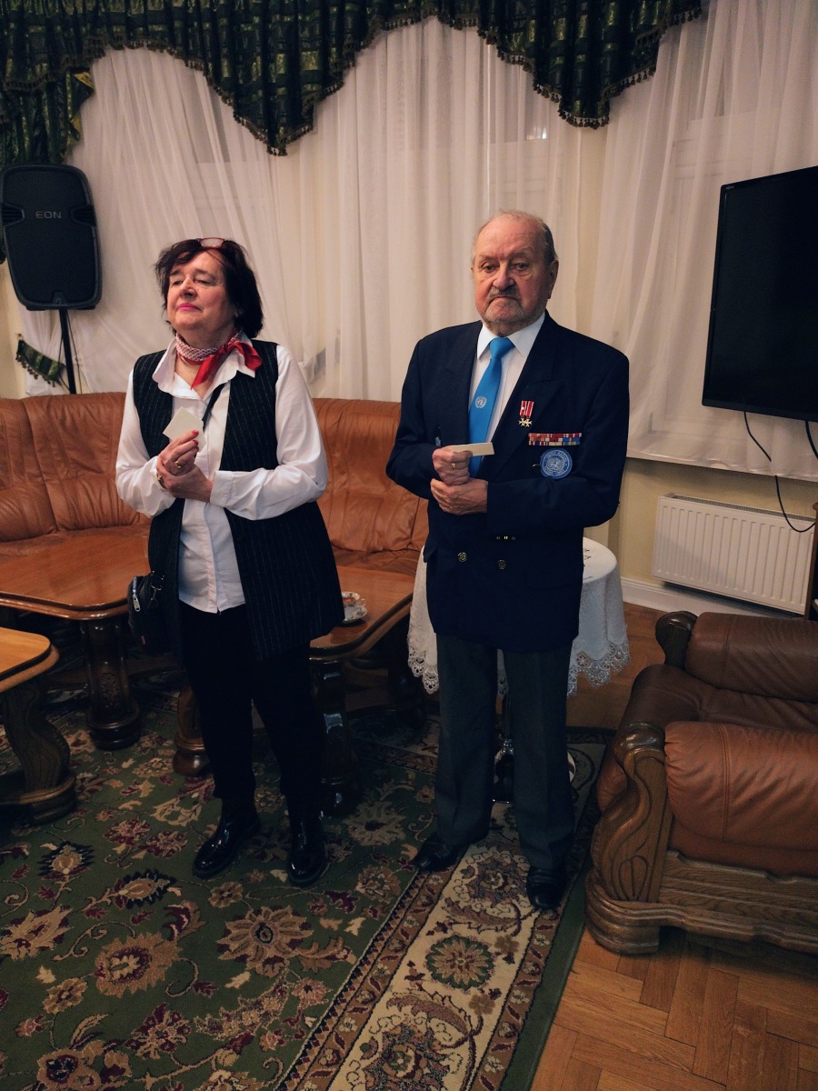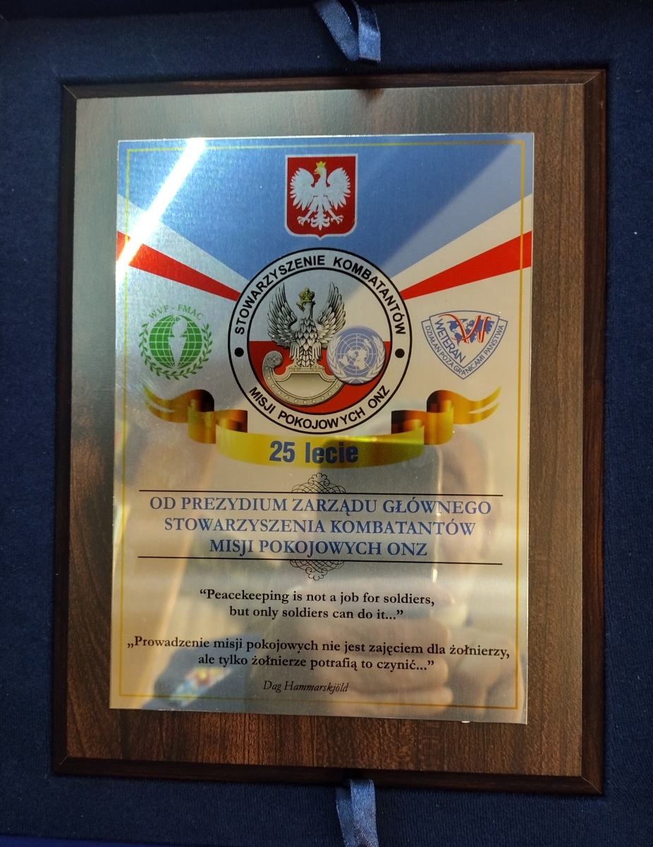 W oficjalnej części spotkania, zebranych przywitał Prezes Koła Kol. Ryszard Keller. Następnie wręczono zasłużonym członkom Koła Złote Medale za zasługi dla SKMP ONZ oraz pamiątkowe Gwiazdy Weterana służby poza granicami kraju. Kolega Prezes, poinformował zebranych, że z okazji naszego 25-lecia, Zarząd Główny SKMP ONZ wyróżnił nasze Koło pamiątkową plakietką.