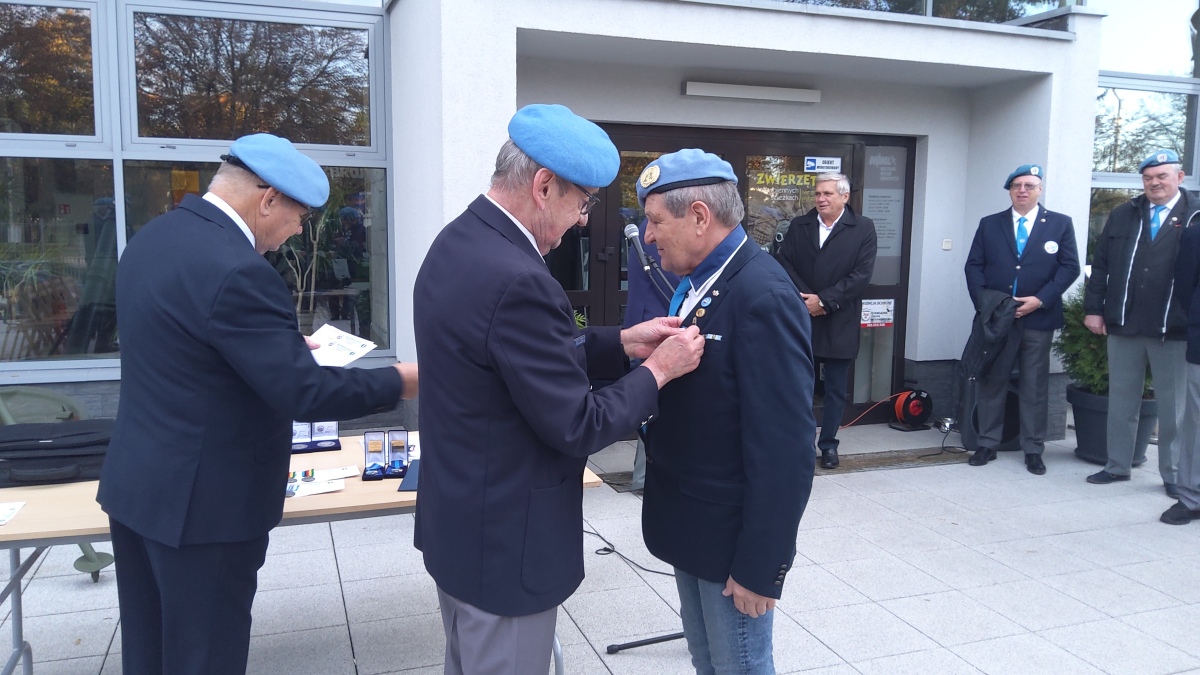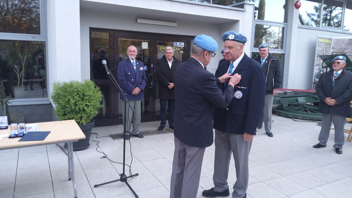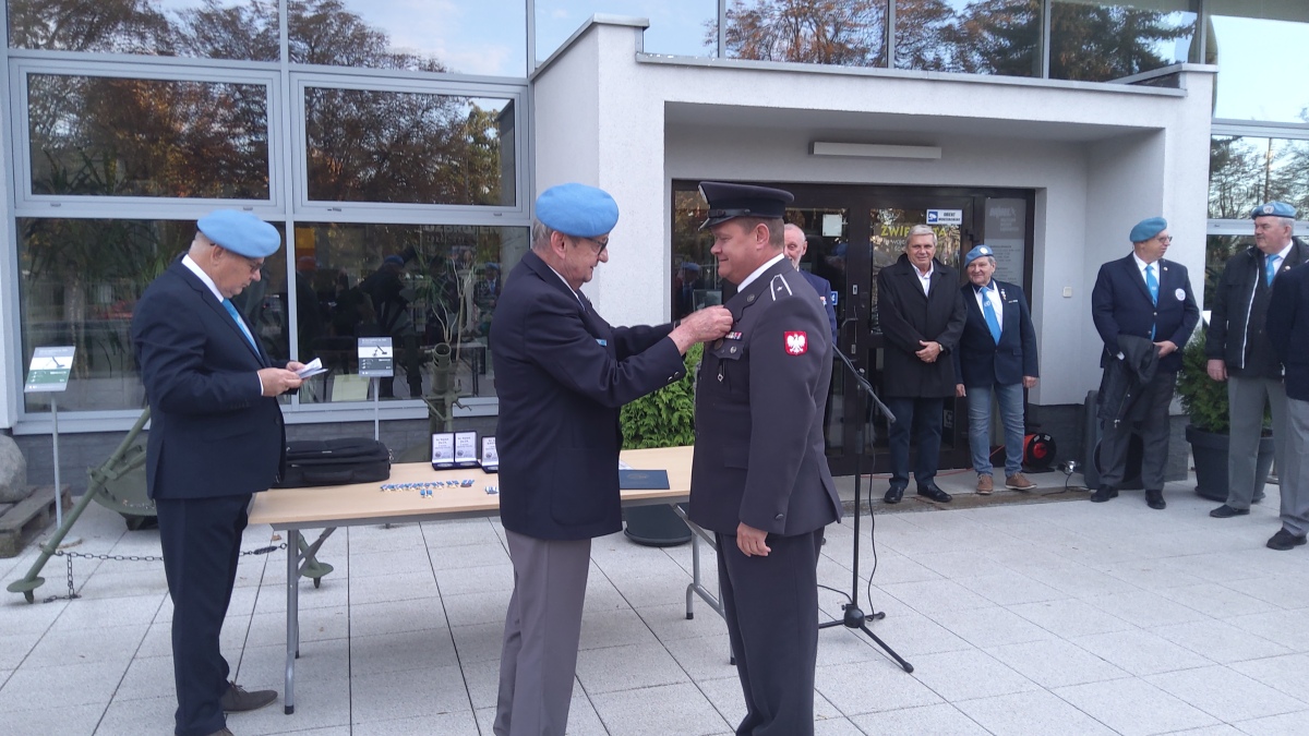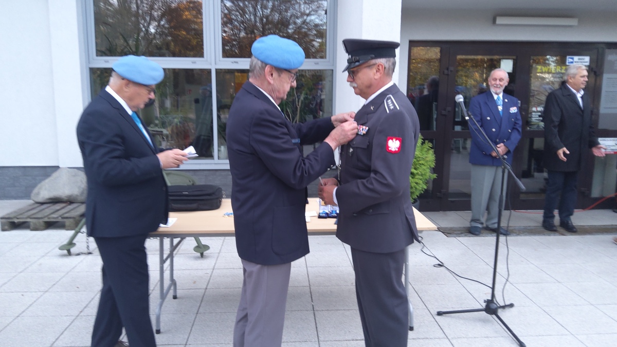 Następnie zostało udekorowanych kilkunastu naszych członków złotymi i brązowymi medalami za zasługi dla SKMP ONZ. Przy okazji wręczono też medale pamiątkowe i okolicznościowe. Tradycyjnie na zakończenie części oficjalnej przy Tablicy Pamiątkowej upamiętniającej żołnierzy pełniących służbę poza granicami kraju, złożyliśmy wiązankę kwiatów.