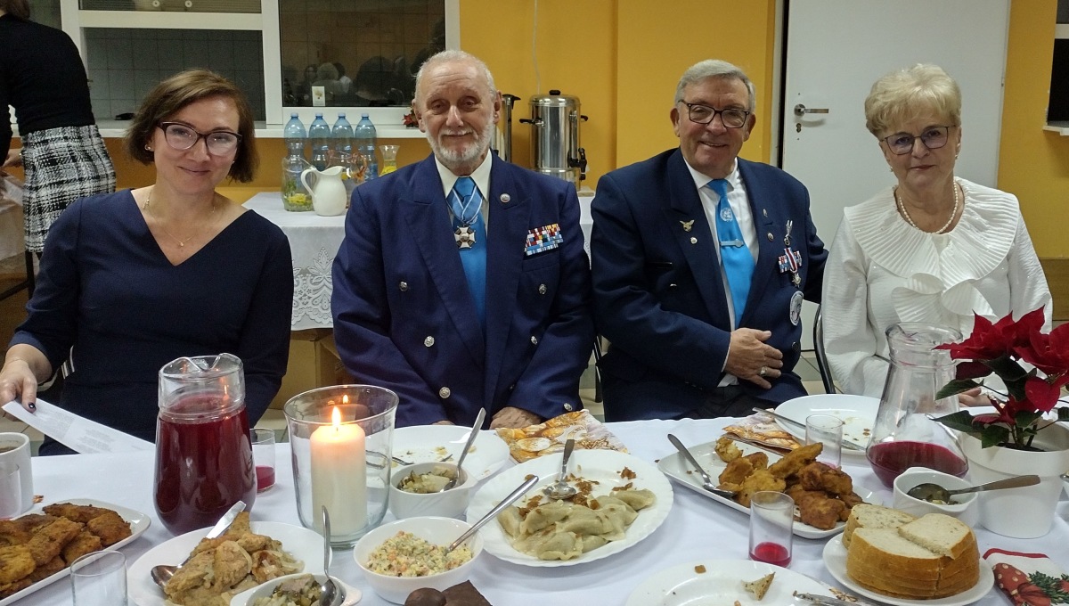 Po złożeniu życzeń w sympatycznej atmosferze uczestniczyliśmy w kolacji wigilijnej. Przy akompaniamencie akordeonu włączyliśmy się do grupowego śpiewania kolęd.